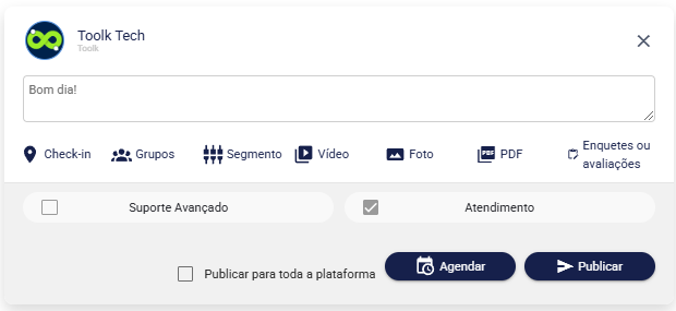 A aba "Grupos" da Toolk conecta você a comunidades de interesse, permitindo filtrar postagens relevantes, participar de discussões e interagir com enquetes. Colabore em debates focados, compartilhe atualizações, troque materiais e resolva dúvidas, tornando sua experiência mais dinâmica e personalizada.